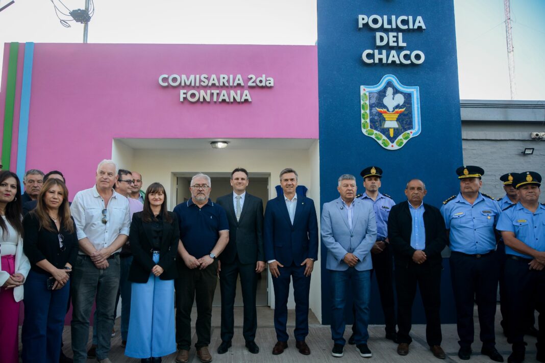 El Gobernador Leandro Zdero junto a la vicegobernadora Silvana Schneider, al intendente de Fontana, Fernando Cuadra, a los ministros de Seguridad e Infraestructura, Hugo Matkovich y Hugo Domínguez inauguraron la ampliación y refacción integral de la Comisaría Segunda, en el marco del plan provincial de modernización e infraestructura en seguridad. La obra fue financiada con recursos provinciales.