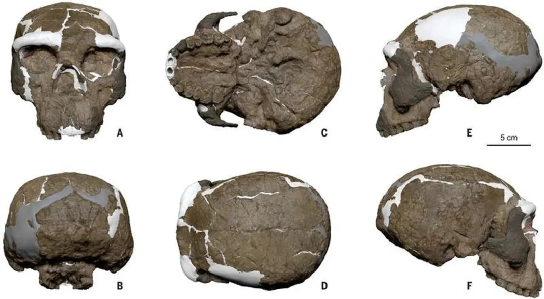 El cráneo reconstruido muestra una combinación de características primitivas y derivadas, presenta un frente baja y plana y un rostro prominente que se asemeja al del Homo erectus más antiguo o al Homo heidelbergensis, una especie humana que vivió en África y Europa hace entre 700.000 y 200.000 años.
