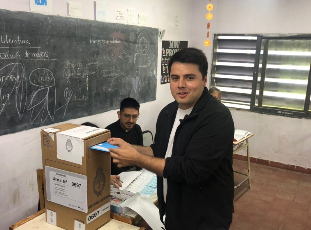 El candidato a senador nacional por La Libertad Avanza, Juan Cruz Godoy, emitió su voto este domingo por la mañana en la Escuela N° 31 «Gervasio Artigas», en Resistencia.
