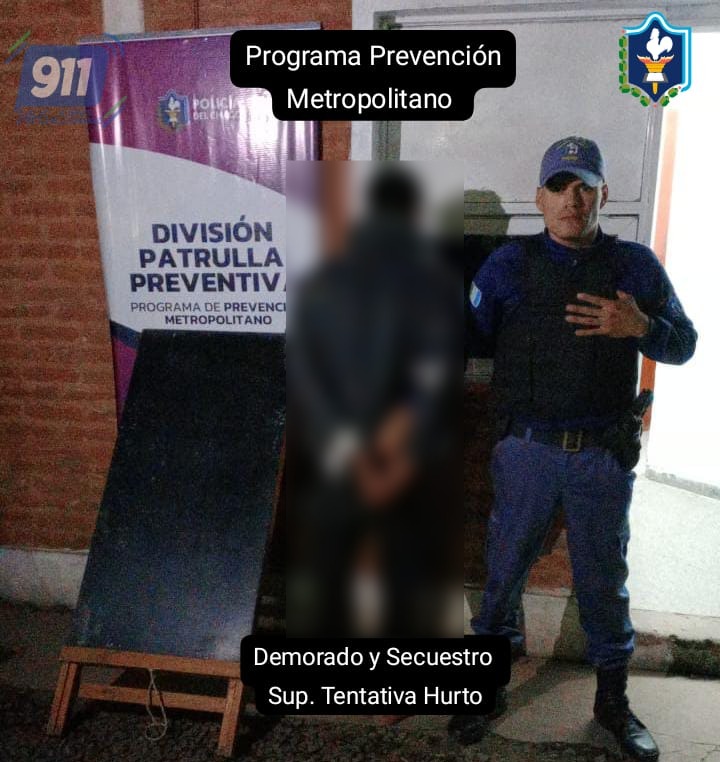 El Comando logró interceptarlo a pocas cuadras, reteniéndolo hasta la llegada del personal de la División Patrulla Preventiva. En el sitio se procedió al secuestro de un cartel de madera color negro, de aproximadamente un metro de largo por 50 centímetros de ancho.