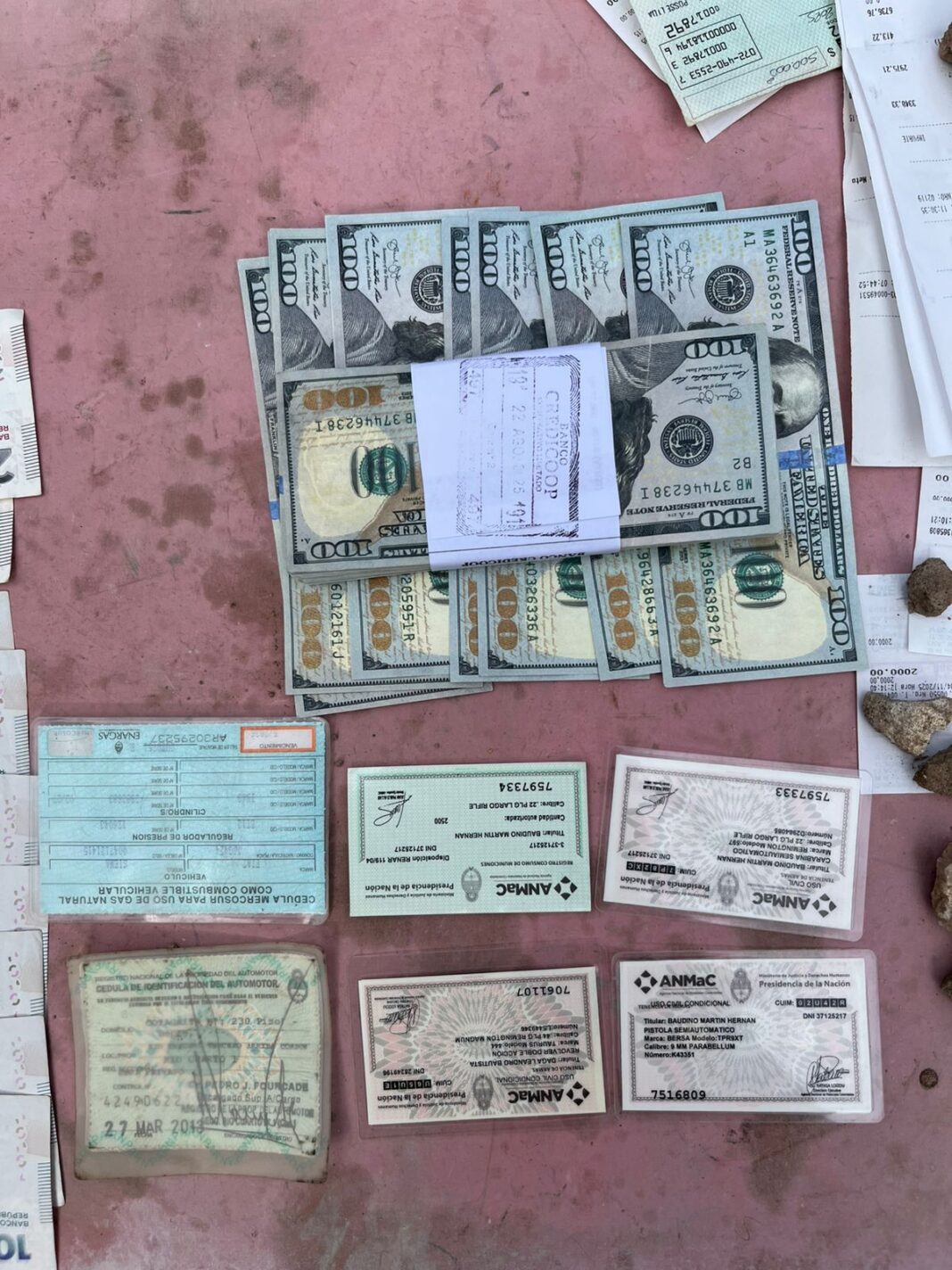 Durante el procedimiento, los agentes secuestraron dinero en distintas monedas, celulares y documentación. Luego, con orden judicial, se realizó la requisa del auto y se halló una considerable cantidad de billetes argentinos y dólares, además de cheques y otros papeles de interés para la causa.