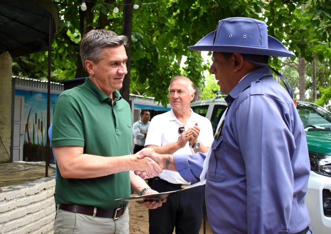 Este viernes, el gobernador Leandro Zdero entregó, junto al ministro de Seguridad Hugo Matkovich y al Jefe de Policía, Fernando Romero, un patrullero 4×4 a la División de la Policía Rural de Barranqueras. El acto tuvo lugar en la Granja Educativa La Josefina, donde el mandatario reafirmó el compromiso de “continuar trabajando por un Chaco seguro que garantice el bienestar de los chaqueños”.