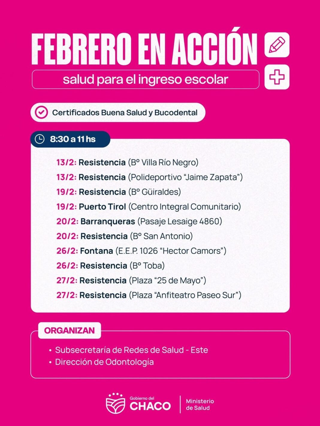 “Promovemos un cuidado efectivo de la salud de los chaqueños, acompañando a las familias en un momento clave del año como es el inicio del ciclo escolar”, señalaron desde el Ministerio.