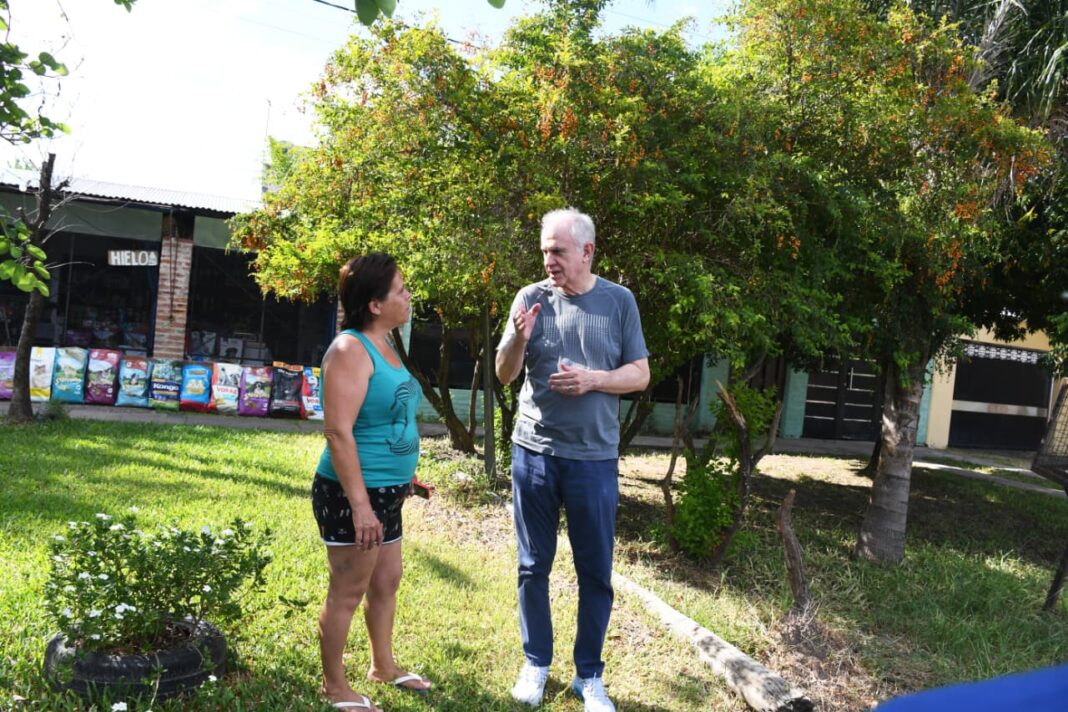 El intendente Roy Nikisch recorrió el barrio 140 Viviendas Arazá, lindante al espejo de agua, para constatar las tareas realizadas y dialogó con agunos vecinos.